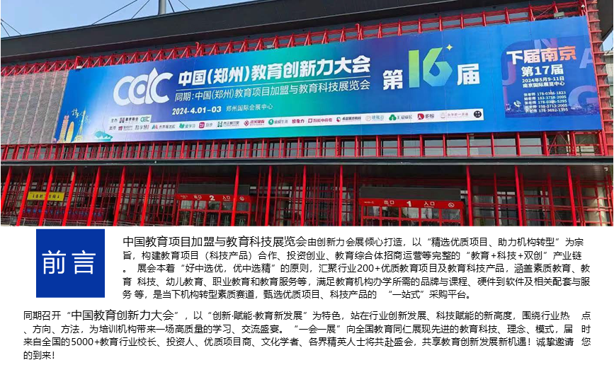 2024第16届中国(郑州)教育项目加盟与教育科技展览会